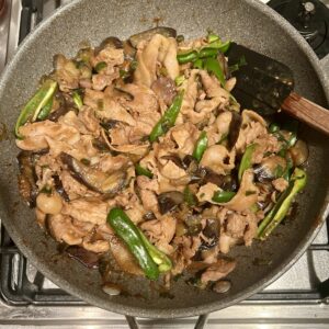 帰ってから、すぐに夕飯の準備をしました。今日は豚肉となす、ピーマンの豆豉炒め。胡麻油ににんにくを入れて、具材を炒めて、オイスターソース、豆豉醬を絡めたもの。中華は合わせ調味料で炒めるだけなので手早く出来ちゃいます。