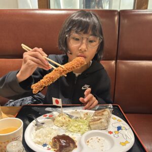 お昼は海老フライが食べたいというので、ヒカリエの中のまい泉に行きました。渋谷に来るときは紀伊國屋カフェや地下のスペースで済ますことが多いのですが、2人でまい泉は初めて。娘が頼んだのは、海老フライもカツサンドもハンバーグも食べられるお子さまプレート。これは満足度高すぎます。