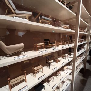 ハンスウェグナーの家具は実際山梨の家で使って、私もダンナも大好きな家具デザイナー。Yチェアーをはじめ、いつかは欲しい家具たちがずらり並んでいました。