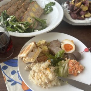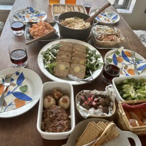 みんなが作ってきてくれたものをちょっとずつお皿によそっていただきました。みんなの近況を聞きながら、過ごす幸せなひととき。